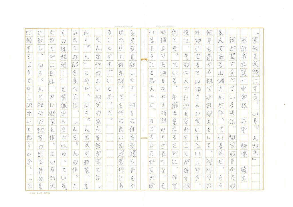 ・「家族を笑顔にする、山ちゃんの米」 梅津 琉生さん(米沢市立第一中学校)