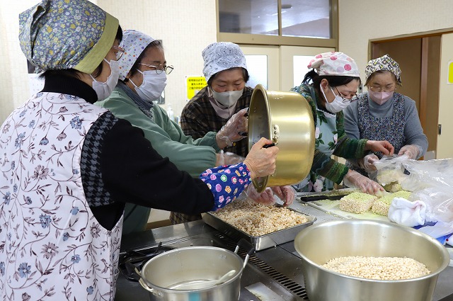JA鶴岡女性部上郷支部は12月4日、鶴岡市上郷コミュニティーセンターで本年度2回目の「かがやき講座」を開き、部員24人がおこし作りを楽しみました。