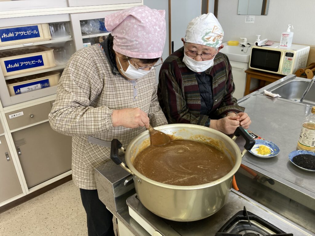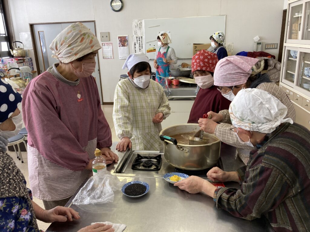 会場の六郷地区コミュニティセンター調理室に入ると、にんにくのいい香りが・・・