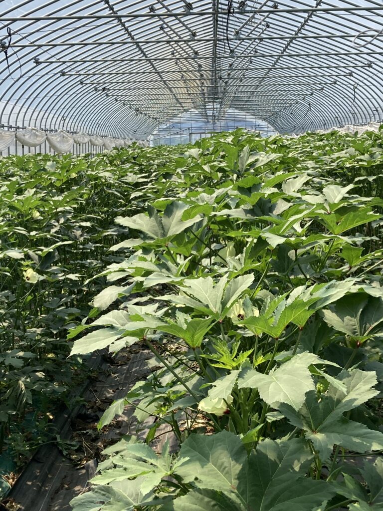 研修先は東根市の農業資材等の取扱会社である㈱鈴商様のご紹介で、24棟もある園芸ハウスを視察させていただき、収穫最盛期のオクラや、もうすぐ収穫予定のほうれん草など出荷時期を予測しながら効率よく作業ができるよう工夫されたハウス内に、部員からは様々な質問が出され、「これから種まきを始める秋野菜の栽培など、大変参考になった」との声が聞かれました。