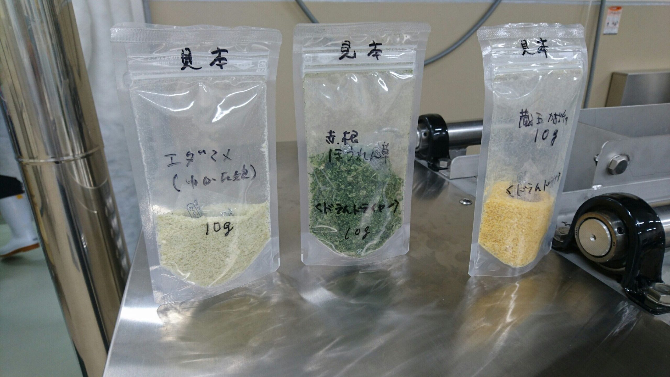 (↑ドライ加工された農作物の見本)