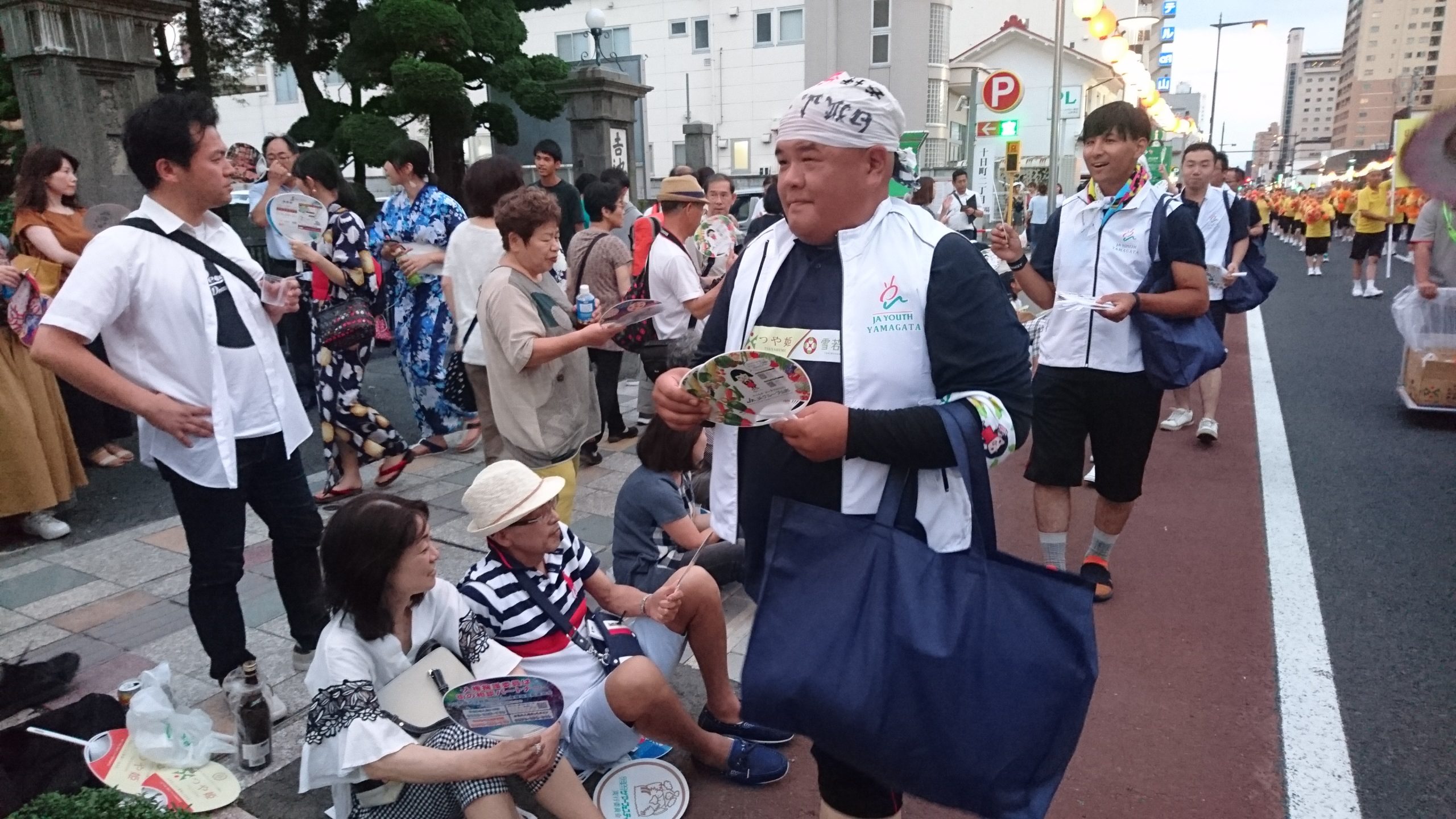 去る8月5日、山形市で開催された第57回山形花笠まつりにて、JAグループ山形と連携し、「農業理解促進運動」を実施しました。